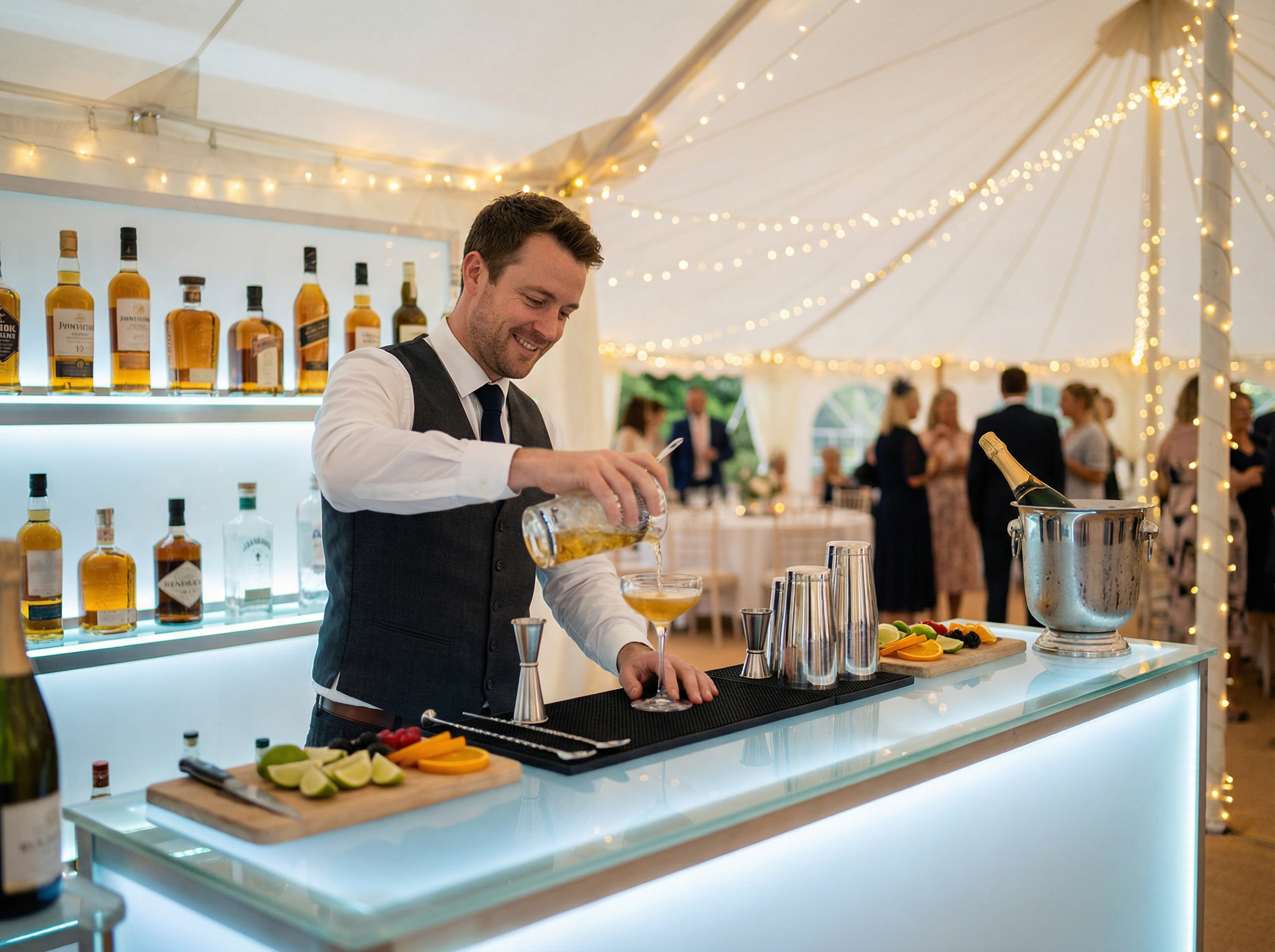 LED-lit portable bars, professional bartenders, and bespoke cocktail menus for weddings, parties, and corporate events across Croydon, Bromley, Crawley & Kingston upon Thames.