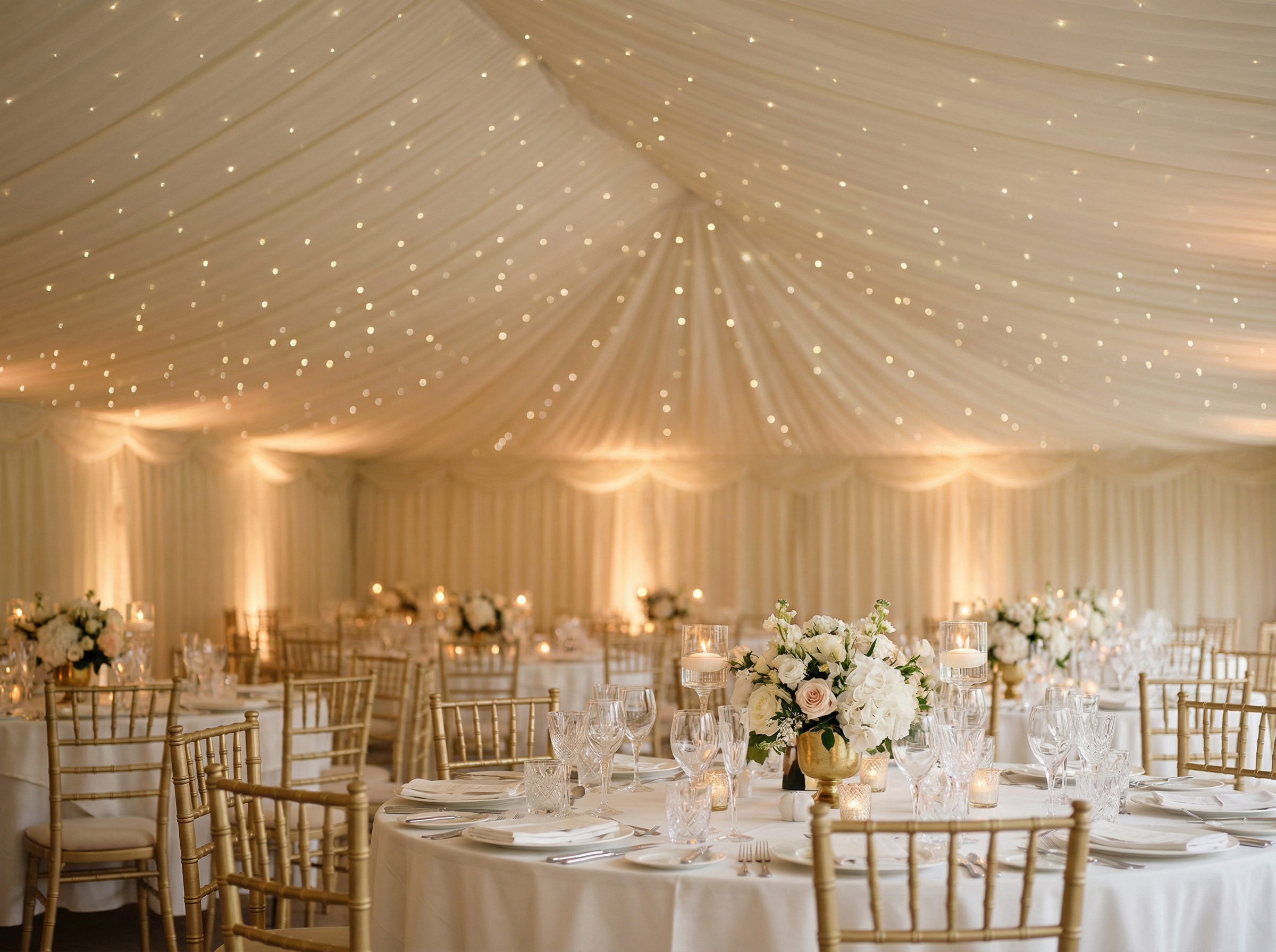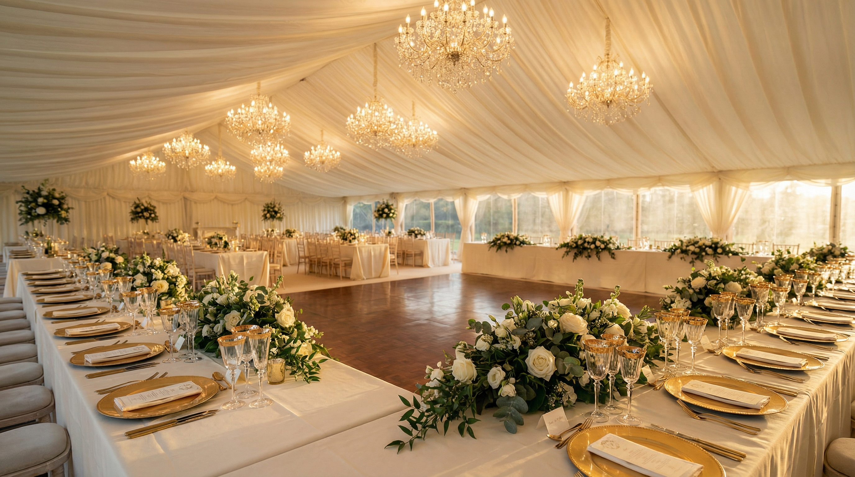We visit your chosen location to discuss the size, layout, and vision for your marquee. Back garden or grand manor — we design for your space.
